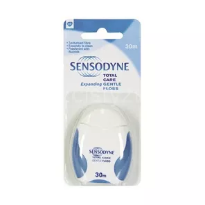 Sensodyne Expanding je jemně voskovaná expandující zubní nit. Zubní nit Sensodyne Expanding po zavedení do mezizubních prostorů zvětšuje svůj objem a tím je lépe čistí. Sensodyne Expanding zubní nit je impregnovaná fluoridem sodným a má jemnou mátovou chuť.Nylonová vlákna zubní nitě Sensodyne jsou při výrobě speciálně stlačena, čímž se usnadní jejich zavádění do mezizubních prostor, kde dojde k výraznému zvětšení jejich objemu a tím k výraznému zvýšení účinnosti čištění.Pravidelné odstraňování plaku z mezizubních prostor pomocí zubní nitě Sensodyne chrání před zubním kazem a gingivitidou.
