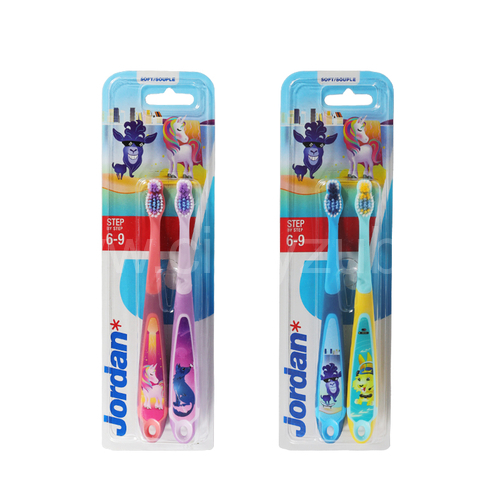 - zubní kartáček pro školáky ve věku 6 - 9 let s měkkými vlákny ve dvou zónách